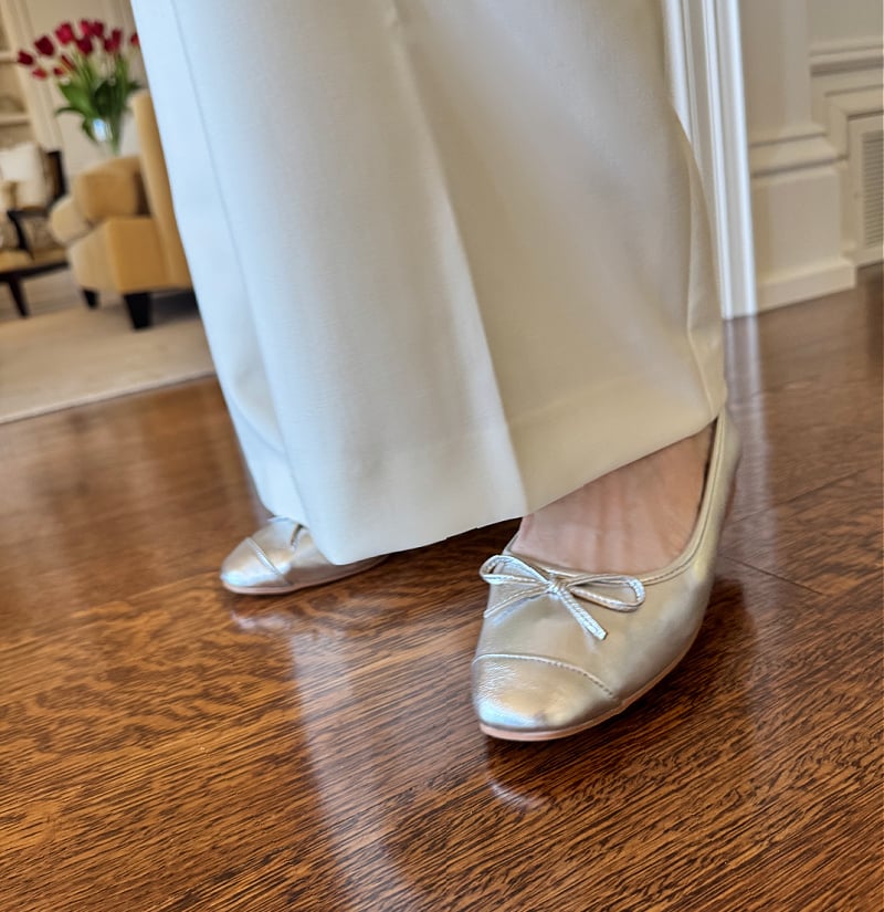 If you are ever unsure which shoes to wear, silver is probably the right answer. It blends better than black, softens outfits better than nude, and feels more modern than gold.
