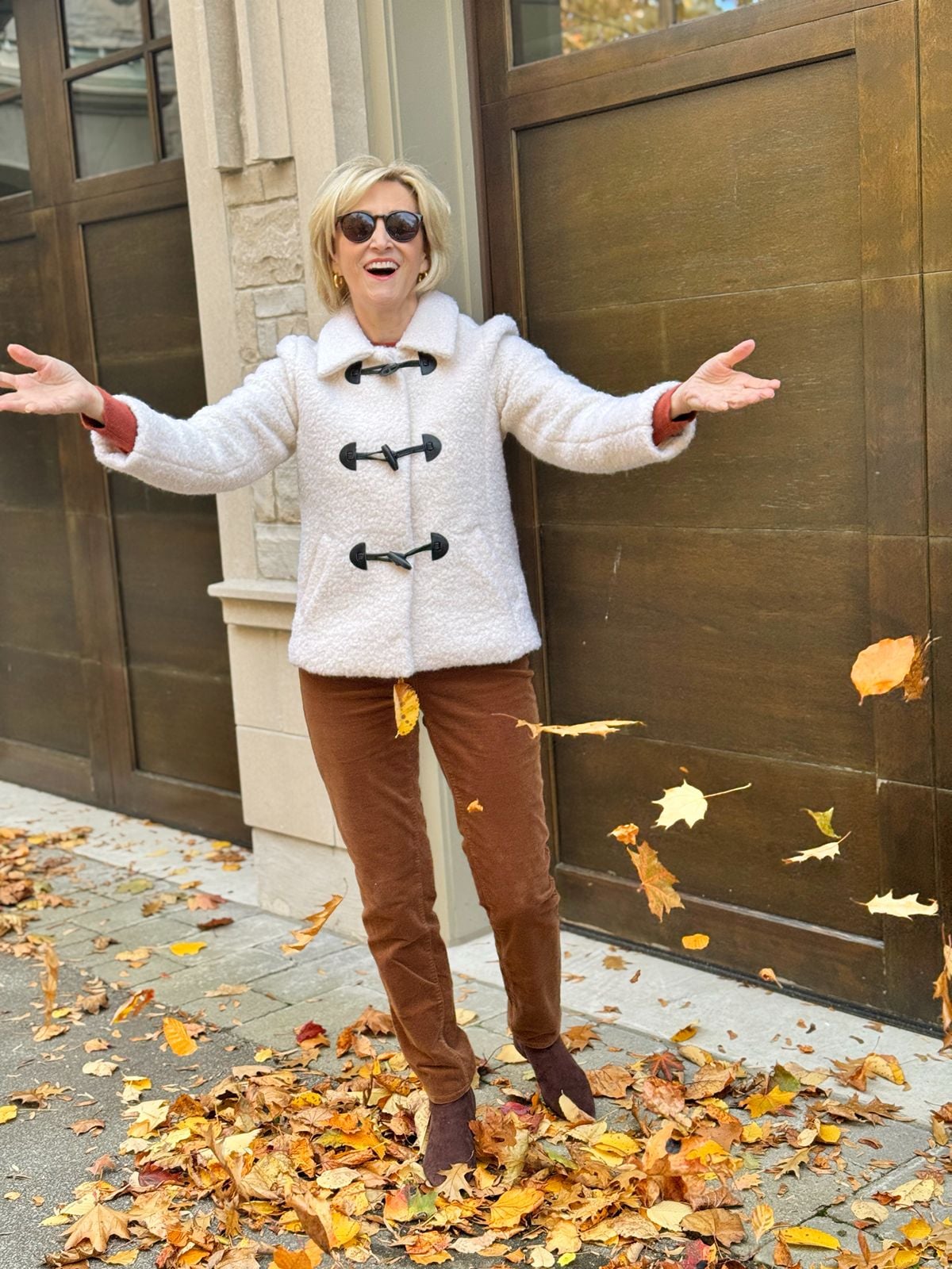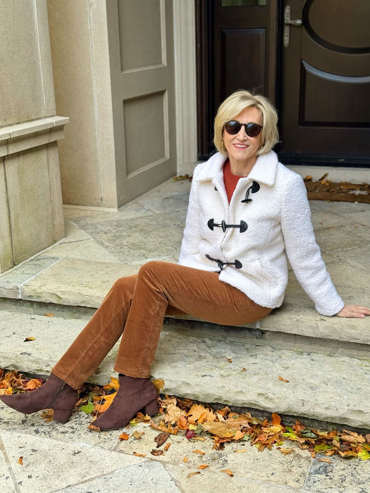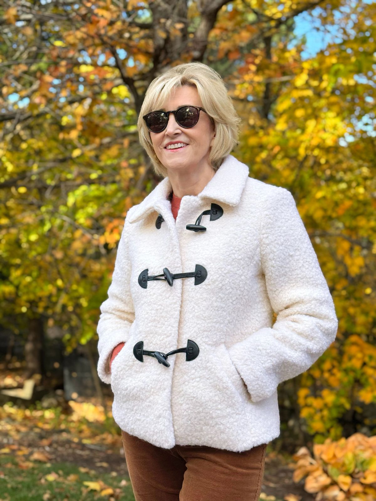 This is the cute sherpa jacket I found at Talbots, and it’s 50% OFF right now!! The creamy color brightens my face, the toggle closures add a charming, modern touch, and the texture is thick and plush without feeling bulky. This jacket strikes that nice balance between cozy and streamlined.