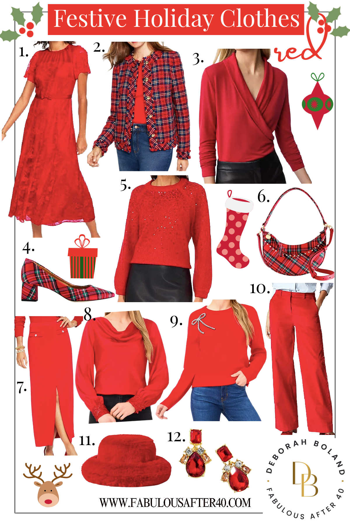 Today, I’m sharing a round-up of all things red that you can buy as gifts or styles to create a festive holiday outfit. Have a look at all these festive red clothes!