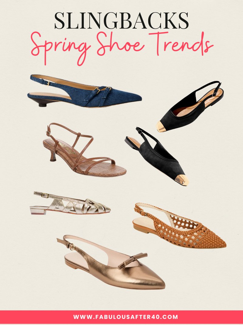 Look for styles with a slight elastic insert at the top line because that’s what creates that “glove-like” fit without being too tight. The sole should be flexible but still have some cushioning. The toe can be rounded, squared, or slightly pointed, all work well for spring. Metallics in silver and rose gold are also very on trend if you want something that adds a bit more interest to your spring outfits.